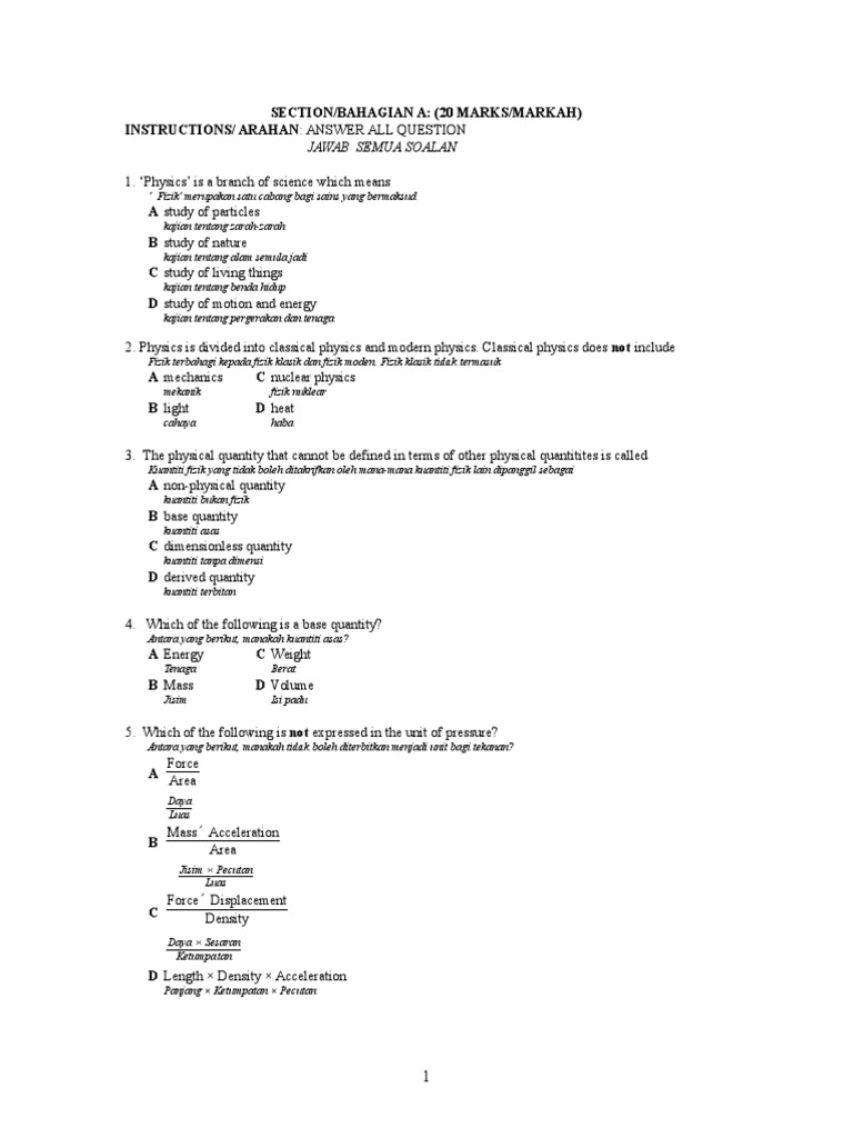 Soalan Ujian Fizik Tingkatan 4 Dwibahasa Physics Form 4 Monthly Test Question Paper Pdf
